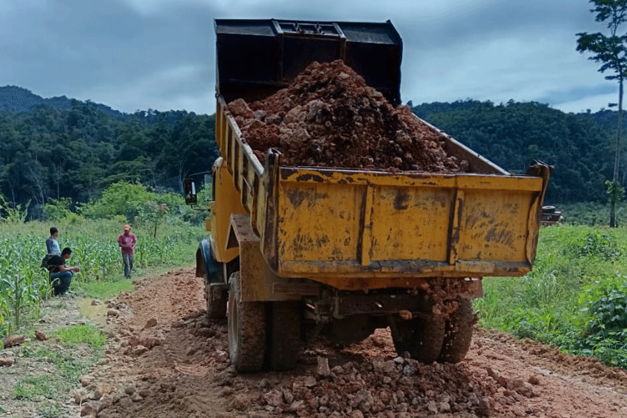 Personal utilizando maquinaria pesada realiza trabajos de relleno estructural e instalación de nueva tubería en el km 236.6 entre Carchá y Chiqueleu en la RN-05-16-B.