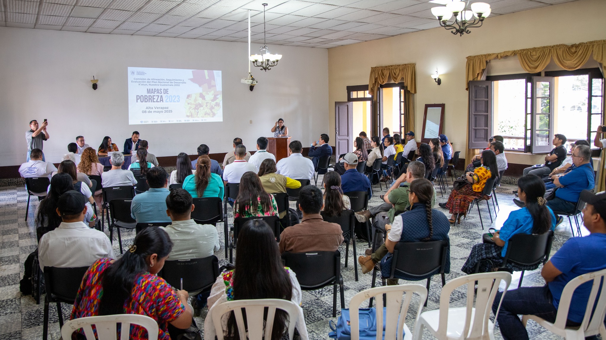 La comisión departamental de Alineación, Seguimiento y Evaluación del Plan Nacional de Desarrollo K’atun 2032 en Alta Verapaz, Presidida por la Gobernadora Departamental Dilia Có Coy y Coordinada por la Secretaria de Planificación y Programación de la Presidencia (SEGEPLAN), socializo los Mapas de Pobreza 2023, haciendo énfasis en la incidencia, brecha y severidad de la pobreza en los municipios del departamento, el evento conto con la participación de las Instituciones Públicas, Integrantes de Cooperación Internacional, Sector No Gubernamental y Alcaldes Municipales del del departamento.