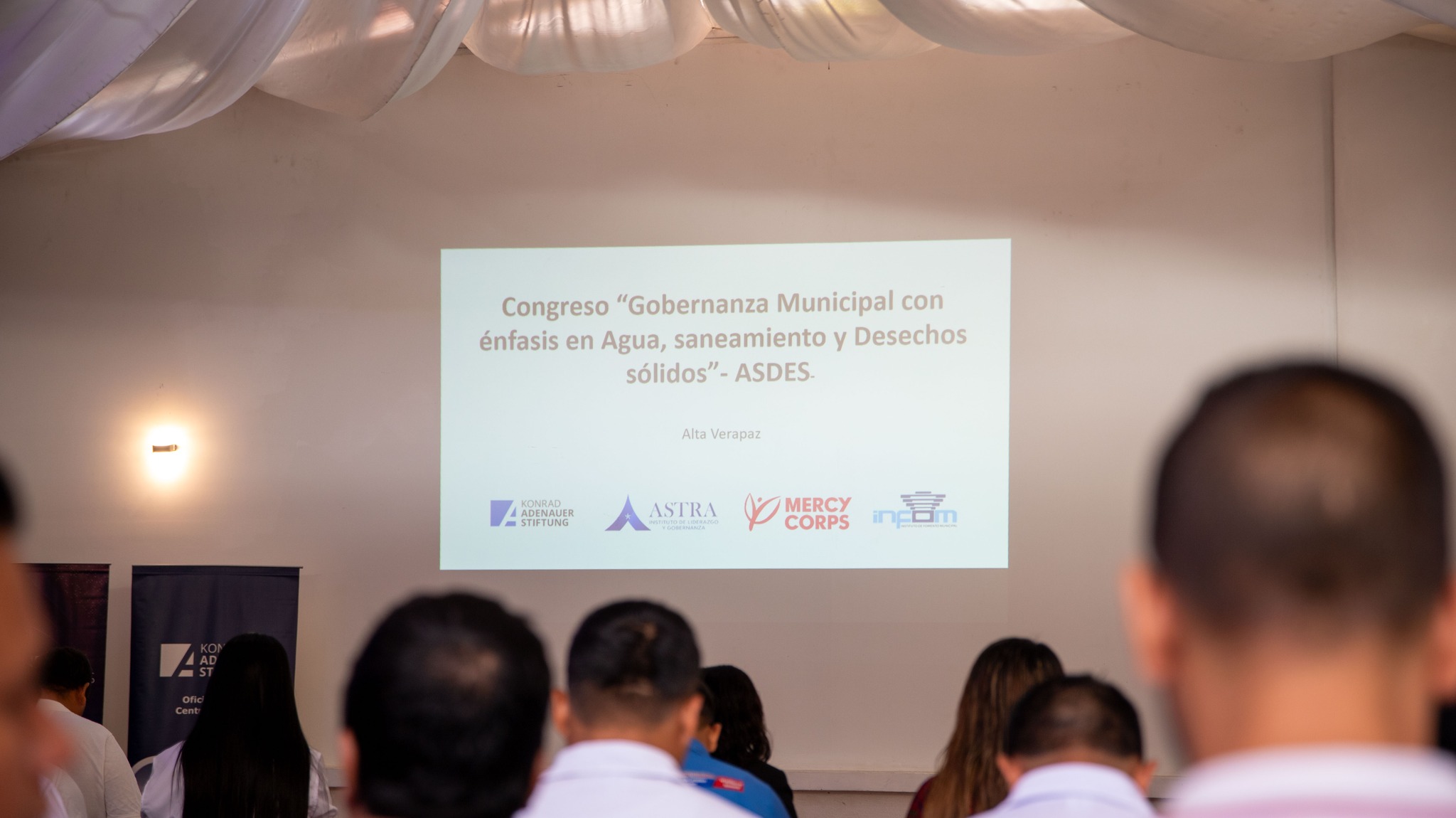 Desde el Hotel San Rafael, Santa Cruz, autoridades municipales, líderes comunitarios, técnicos y aliados institucionales participan en el Congreso “Gobernanza Municipal en Agua, Saneamiento y Desechos Sólidos”, impulsado por Instituto de fomento municipal, Instituto de Liderazo y Gobernanza ASTRA, Mercy Corps y la Fundación Konrad-Adenauer Guatemala