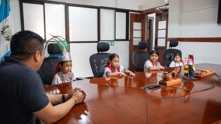 La visita estuvo encabezada por “Ri’ Mam Ajaw”, figura que representa la cultura, el respeto y el empoderamiento desde la niñez. Su presencia en este espacio institucional fortalece el vínculo entre nuestras tradiciones y las nuevas generaciones.