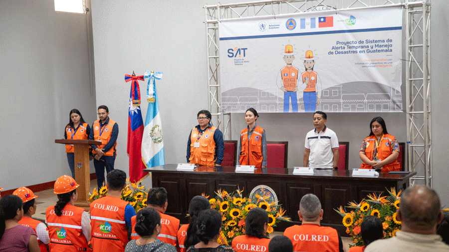 Posteriormente, en el auditorium del CUNOR-USAC, se realizó el acto protocolario de acreditación con la presencia de autoridades de SE-CONRED, representantes del ICDF de Taiwán, la Municipalidad de Cobán y la Gobernación Departamental de Alta Verapaz, reafirmando el compromiso de construir comunidades más seguras y resilientes.