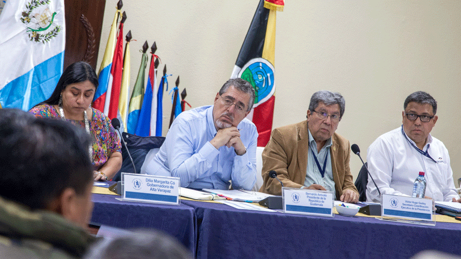 El Presidente de la República sostuvo una reunión con los alcaldes del departamento de Alta Verapaz, acompañado por la Gobernadora Dilia Margarita Có Coy, en el marco de la estrategia #ATuTierra, que impulsa la presencia directa del Gobierno Central en el territorio.